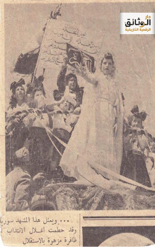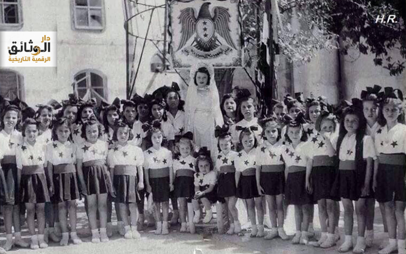 في الصورة النادرة المرفقة نشاهد مشاركة مدرسة خديجة الكبرى بدمشق في احتفالات الذكرى الأولى للجلاء , وفي وسط الصورة الأولى نرى الفتاة التي ترتدي زي العروس وهي الطالبة عفت كوكش التي ترمز إلى سورية ولباس الطالبات يمثل العلم السوري