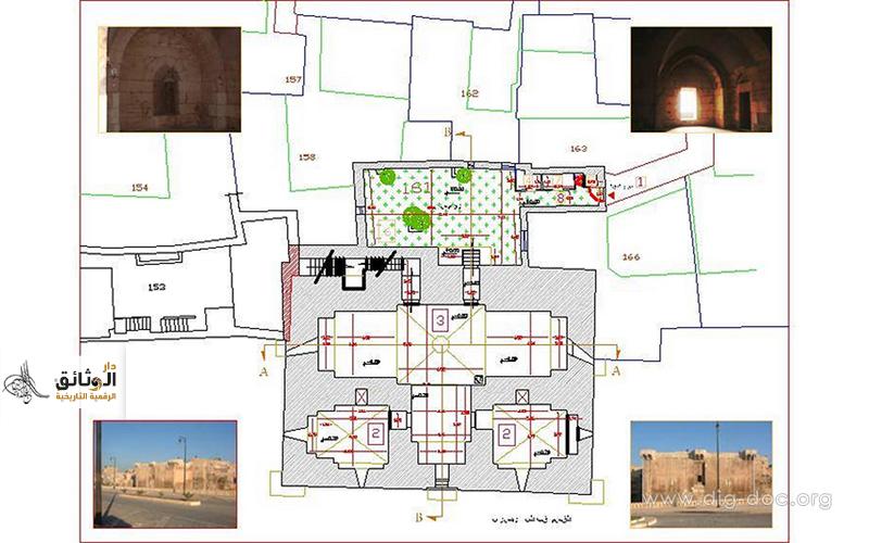 مسقط هندسي للمدرسة الظاهرية الأيوبية البرانية بحلب بنيت 1219م