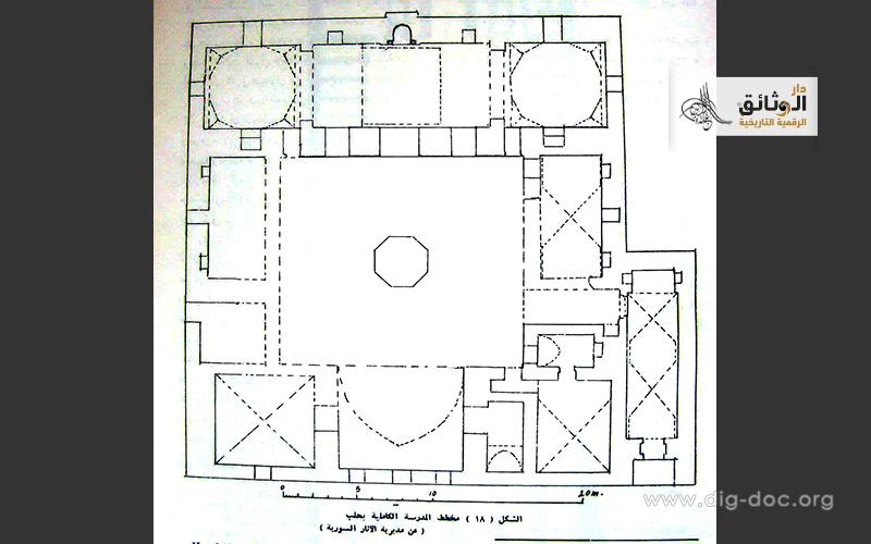 مخطط مسقط هندسي أفقي للمدرسة الكاملية الأيوبية بحلب التي بنتها فاطمة خاتون بنت الملك الكامل عام 1236