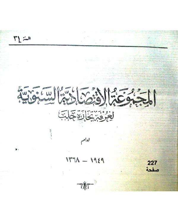 للاطلاع على ما ورد في كتاب "المجموعة الاقتصادية السنوية لغرفة تجارة حلب" لعام1949م بصيغة ملف pdf والمؤلف من 227 صفحة